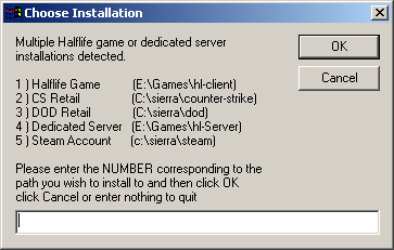 to. Simply input the NUMBER (not the path or the folder name) for the one you wish to install to, then press OK.